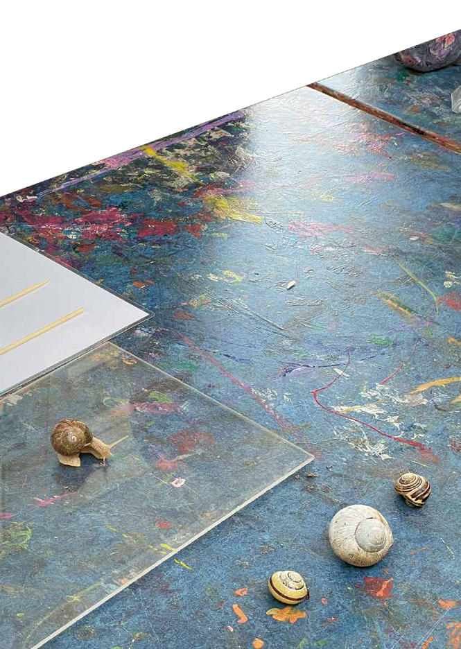re dæmpet. Sneglene begynder forbavsen- de hurtigt at bevæge sig hen ad bordet. Nogle kravler af sig selv over på plexiglas- pladen, som Niels-Peter tager op og viser børnene, at man så kan se, hvordan sneg- len ser ud nedenunder – blandt andet kan de se dens mund.